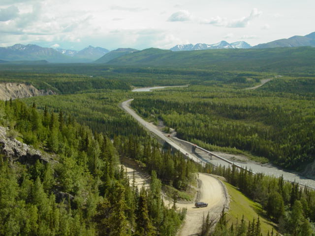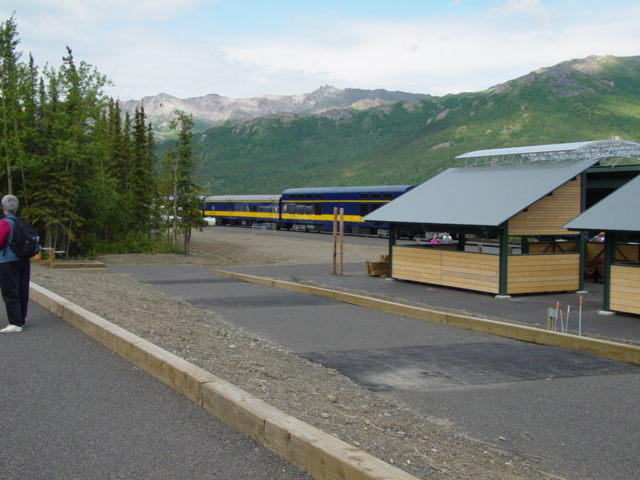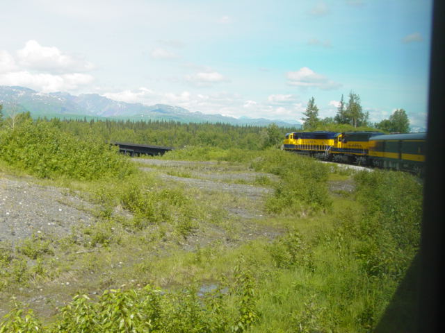 Sunday, June 13 On Sunday morning, we boarded the Alaskan Railroad for Denali where we would take a tour of the Denali National Park. The following pictures were taken at the train depot and on the ride to Denali. Remember to click on thumbnail for larger picture.