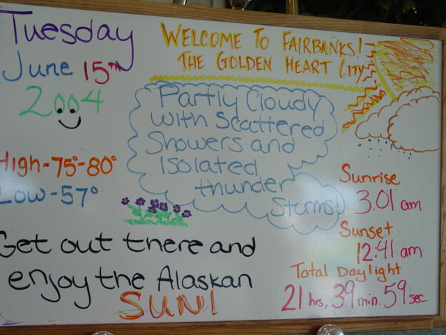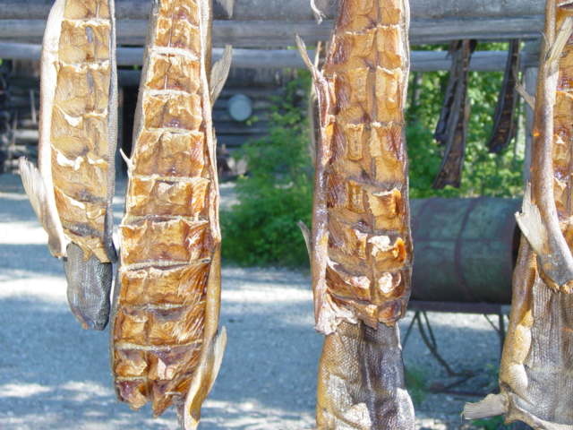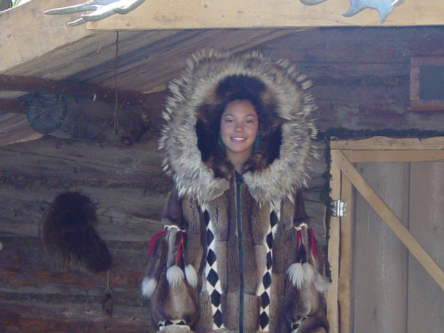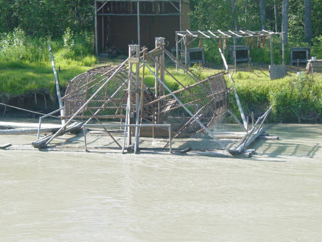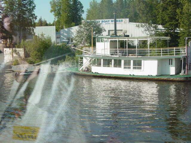 . The Binkley family, that owns the riverboat, has operated sternwheeler riverboats in Alaska since the Gold Rush of 1898. Captain Jim and Mary Binkley first offered riverboat tours in Fairbanks in 1950 and the business has grown every year since. Their three sons, Skip, Jim Jr., and Johne, are all licensed riverboat captains, and daughter-in-law Judy heads the Discovery Trading Post gift shops. The youngest Binkleys join the crew at age five and continue the family tradition started by their great grandfather, Charlie Binkley. The daughter of Jim Jr. is the youngest riverboat captain in the United States. From the boat, we visited and heard about the kennels of Susan Butcher. Susan and her husband Dave Monson have run in and won almost every major dog sled race worldwide. Additionally, Susan has accomplished many challenges never before attempted, including taking a team of dogs to the summit of Mount McKinley! Due to a death in the family, Susan was not there but we saw an excellent demonstration by one of her helpers on how they train the dogs. We also saw a recreation of a fish camp where the Interior Athabascan Indians practiced a subsistence lifestyle. It is at the fish camp that they catch fish to feed their dogs and themselves throughout the winter. Fish camp is also where the family elders worked side by side with the younger generations, passing down their history and culture, preserving their heritage. A highlight of the cruise was is a one-hour stop at the Chena Indian Village, where Alaskan Native guides took us on a guided tour. We saw Athabascan Indian village with cabins made of spruce logs, a cache used for storing supplies, and fur pelts. Our guides explained how the wolf, fox, martin, and beaver were used to provide food and protection in the harsh Arctic climate. The following pictures are of the Riverboat Cruise and the scenes along the river.