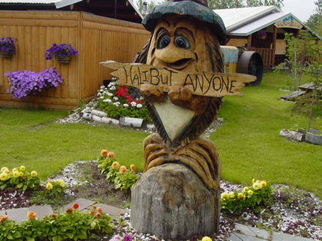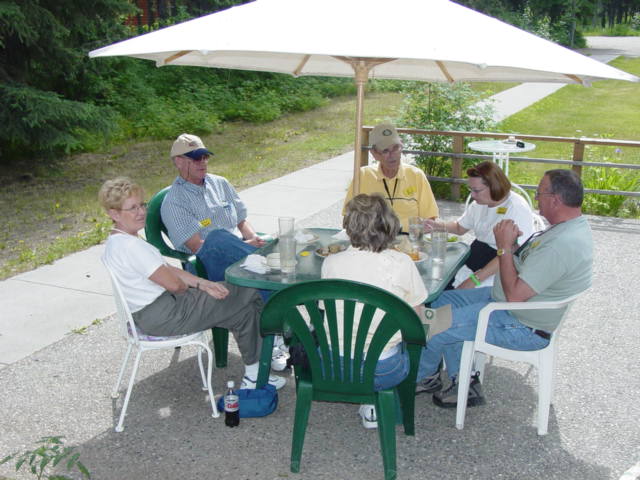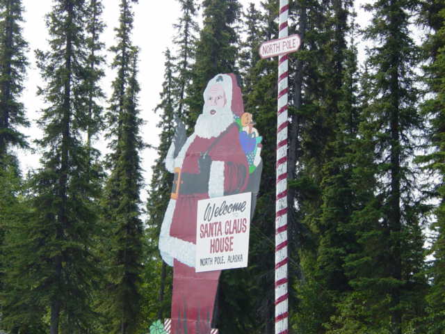 Wednesday, June 16 On Wednesday morning, we had another great breakfast at the hotel and headed back on tour with the first stop being of the Alaska Oil Pipeline. The 800-mile-long Trans Alaska Pipeline System (TAPS) is one of the largest pipeline systems in the world. It stretches from Prudhoe Bay on Alaska’s North Slope, through rugged and beautiful terrain, to Valdez, the northernmost ice-free port in North America. It crosses three mountain ranges and over 800 rivers and streams. About one half is under ground and the other half is above ground. Since pipeline startup in 1977, Alyeska Pipeline Service Company, the operator of TAPS, has successfully transported over 14 billion barrels of oil. The next pictures are of the pipeline. Leaving the pipeline, we visited the North Pole. North Pole, Alaska is 14 miles southeast of Fairbanks on the Richardson Highway in the Tanana River Valley. The area known as North Pole was homesteaded in 1944. Later the homesteaders sold the property to a company who named it North Pole. The name was selected to attract the toy industry to manufacture articles made in "North Pole". The project failed to blossom but the town has continued to grow with street names like: Santa Claus Lane, Snowman Lane, Kris Kringle, Mistletoe, Holiday Rd., Saint Nicholas Drive, North Star Drive, Blitzen, and Donnor. The following pictures were taken at the North Pole.