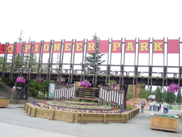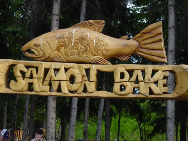 After lunch, we visited the Ice Museum of Fairbanks, Pioneer Land and ate dinner at an Alaskan Salmon Bake. At the museum, we saw a video of the ice sculptures that are featured in a festival held in March in Fairbanks. Artists from all over the world come to create figures of of huge pieces of ice. The following pictures are taken of the remaining activities of the day.
