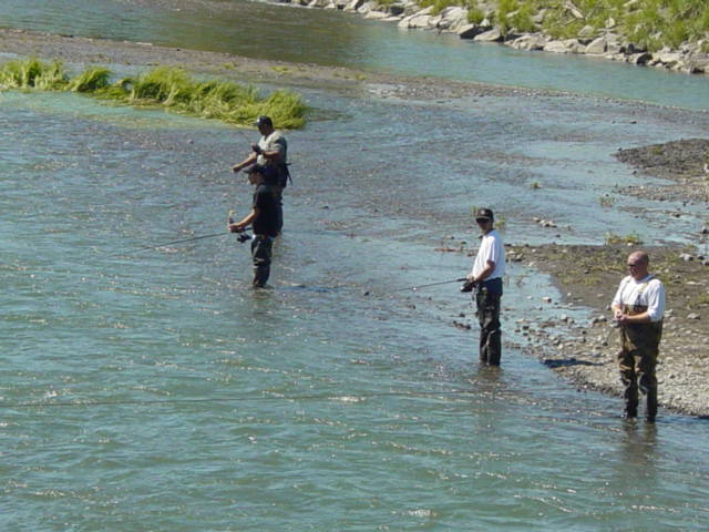 After lunch it was the famous Alaska Ulu Factory and next door, we saw some fishermen fishing on Ship Creek for salmon. The ULU knife (pronounced ooloo) is the most renowned knife in Alaska. Native people of northern Alaska invented this knife centuries ago. It is used for hunting, fishing, skinning, filleting and every other imaginable domestic cutting need by the Inuit (Eskimo) people. The traditional ULU was an Eskimo cutting tool made of slate and bone, with a sharp edge for cutting or carving. The Eskimos made them in all sizes, from a small blade for cutting skins to a cleaver for carving meat. But, today's version is manufactured from stainless steel and provided with a hardwood handle for ease of use. The ULU has a rounded blade topped with a handle and is usually grasped