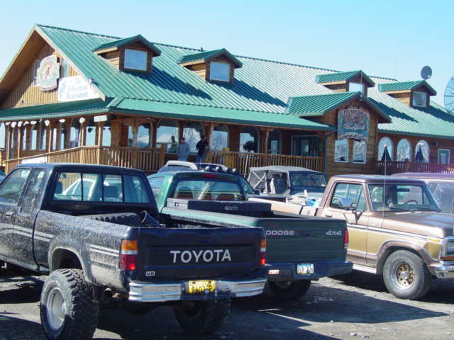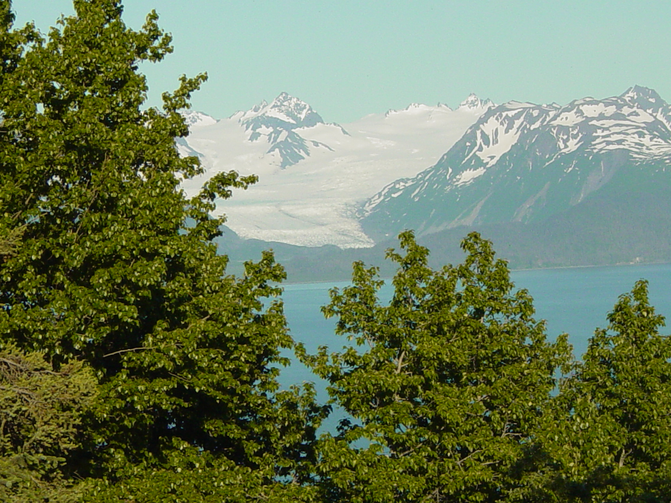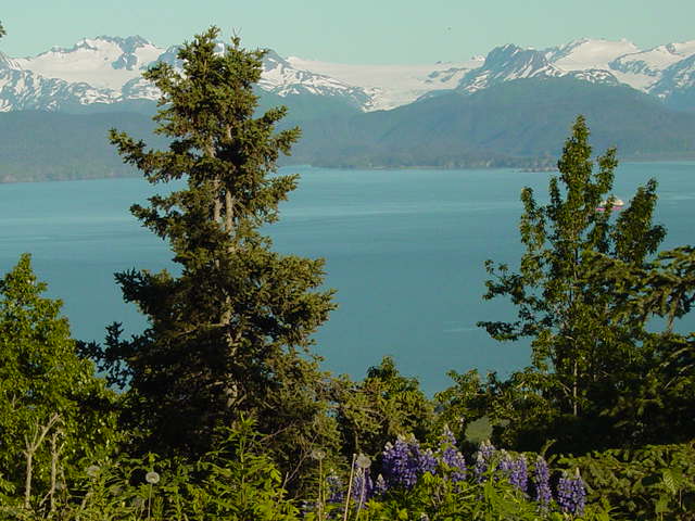 Saturday, June 19 The next two days could have been condensed into one half of a day as far as I was concerned. If you love to fish or eat fish, you may have enjoyed it more, but, I like the phrase, "where's the beef". We stopped in Sodotma for lunch which was ok but not enough to get pictures and then on to Homer on the Spit. A spit is described as as a narrow point of land extending into a body of water. We once again stayed in Bed and Breakfast. Remember what Forest Gump said, "you never know what you are going to get". Our room was certainly not anything to brag about this time and being told to take off our shoes was not the kind of hospitality we are used to in the south. We were assigned the sweetheart room and I thought it was because Laura and I had been sweethearts for 47 years. But the real reason was the room was so small, we had to put our arms around each other and turn around at the same time. It was the smallest bedroom we had slept in since our days in the trailer at Virginia Tech. The views from Skyline Drive of the Spit were very good and I did see a moose as I went out the door early one morning, so the two days were not all that bad.