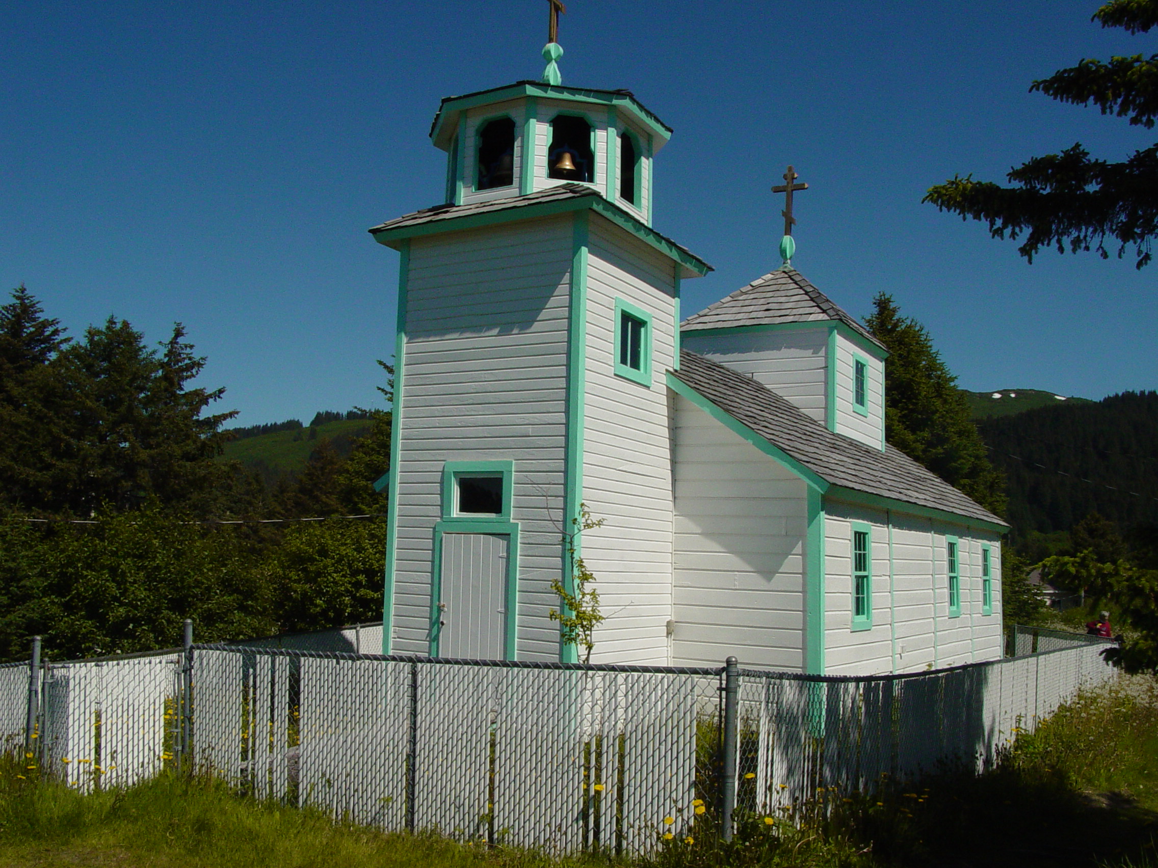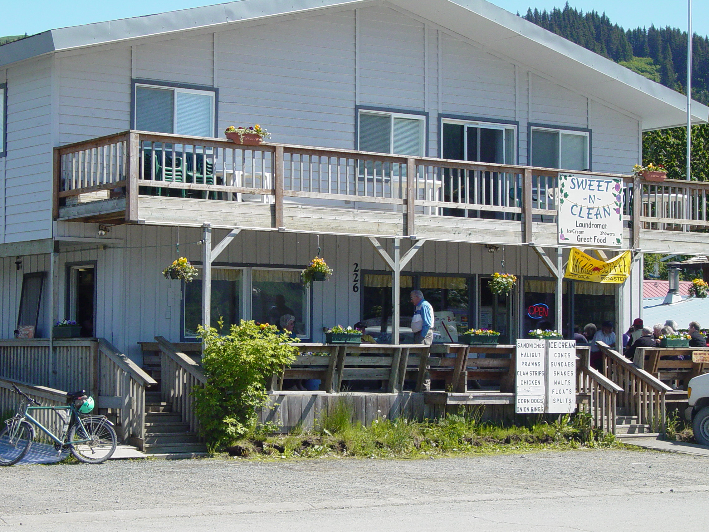 Sunday, June 10 Happy Fathers Day!! We spent a little time going to the Alaska Wild Berry Products gift shop. The year 2004 commemorates Alaska Wild Berry Products’ 57th year in business. Since 1946 they have used native berries harvested by hand from the wilderness of Alaska to produce jams, jellies and sauces of the excellent quality and taste. Other gift items were also available including native craft, shirts etc. We picked up a box of candy and some other products before heading into Homer and catching the boat to Seldovia. Seldovia is "home to 307 friendly people and a few old crabs". That is really their slogan. We had gone to a coffee shop to possibly eat lunch and this lady was sitting on the porch working on a craft. Laura and some others walked in the shop and I was trailing along taking some pictures. As I got up on the porch, the lady said, "well, I suppose I better see what they want". I think this is the same person that said Bill Reed could work in Seldovia leading the tourist from the boat to the town. He asked about some training and she said he did not need any additional training to be an "old crab". Seldovia is located in the entrance of Seldovia Bay on the southern portion of Kachemak Bay. It is only accessible by sea or air. We walked on the historical boardwalk where we saw houses of 75 to 100 years ago. We also visited St Nicholas Church, still standing after 100 years. Eskimo, Aleut, Indian, Russian, Scandinavian, German, and many other peoples congregated in Seldovia, providing a rich and varied heritage that still survives. Most were seafaring peoples and they oriented themselves to the water, geographically and economically The following pictures were taken in Seldovia and the cruise over to the town. After the cruise to Seldovia, we returned to Homer where we ate at Fishermen Restaurant. Since prime rib was a Fathers Day special, I chose beef over fish. We returned to the bed and breakfast to prepare for an early start the next morning.
